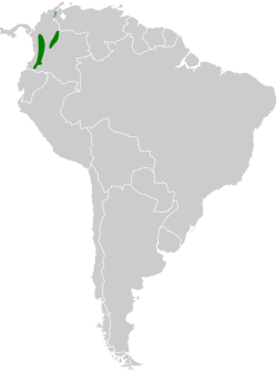 Distribución y hábitat:Se distribuye a lo largo de los Andes de Colombia y en el extremo noroeste de Venezuela. Esta especie es considerada bastante común en su habitad natural: los enmarañados arbustivos, clareras, jardines y bordes de bosque, principalmente entre los 900 y los 1300 m de altitud